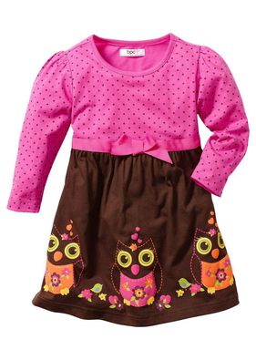 Rochiţă super dulce cu formă confortabil evazată, fundiţă decorativă şi imprimeu drăgălaş cu bufniţe la tivul poalei. Material superior: 100% bumbac