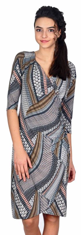 Rochie casual gri petrecuta cu imprimeu buline DASS4G/R, model din colectia La Femme 2016. Rochia are decolteul in V, petrecut si maneca 3/4. In talie pe partea stanga este prevazuta cu o incretitura de unde porneste un fald petrecut, pana la terminatia de jos. Modelul este cambrat, cu imprimeu buline gri si roz. Da culoare tinutelor tale cu noua colectie La Femme! Compozitie: 95% poliester, 5% elastan, Material: tesatura din fibra artificiala elastica, Lungime: 100 cm, Produs import Franta. Pentru fotografie s-a folosit masura 36 la inaltimea de 1,77m.