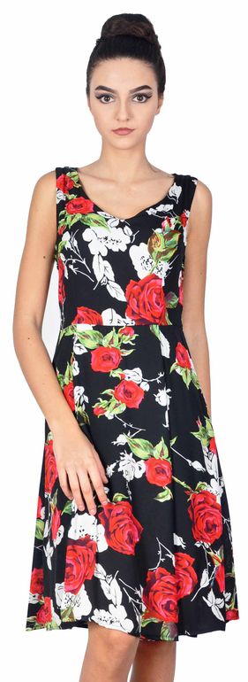 Rochie casual neagra cu flori imprimate 10911N