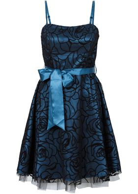 O piesă rafinată pentru o seară de vis! Rochie cocktail adorabilă, realizată din material lucios acoperit cu o un material transparent, de contrast, cu trandafiri stilizaţi pe toată suprafaţa. Model cu poala evazată feminin, cordon lat de culoare asortată de strângere în talie şi breteluţe detaşabile. Lungimea la măr. 38 este de cca. 90 cm. Material superior: 100% poliester; Parte exterioară: 100% poliester; Căptuşeală: 100% poliester
