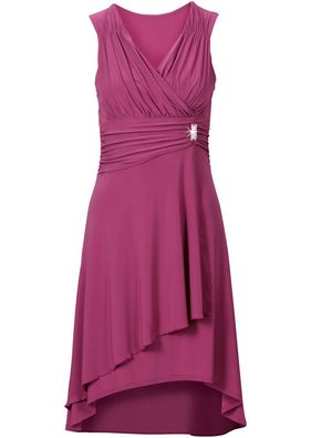 Un model frumos şi feminin, cu un decolteu în V, croi suprapus, cute de efect şi o aplicaţie cu broşă decorativă. Ceva mai lungă la spate. Perfectă pentru o ţinută de ocazie. Lungime de cca. 92 cm la măr. 40/42. Material superior: 95% poliester, 5% elastan