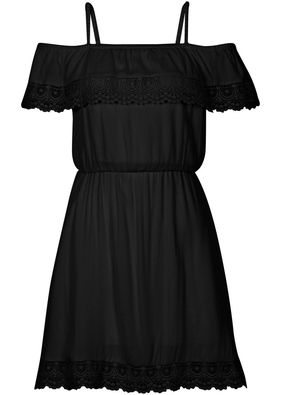 O rochie şic realizată în stil boem, cu un croi feminin care lasă umerii frumos descoperiţi, prevăzută cu cordon delicat în talie şi volănaş în partea de sus ornat cu dantelă adorabilă. Lungimea la măr 36/38 este de cca. 90 cm. Material superior: 100% vâscoză; Căptuşeală: 100% poliester; Dantelă: 100% poliester