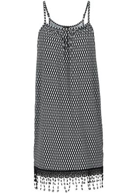 O piesă fermecătoare de vară, cu croi lejer pe trup, breteluţe delicate şi tivul poalei ornat cu dantelă adorabilă şi cu franjuri jucăuşi. Lungimea la măr. 36/38 este de cca. 86 cm. Material superior: 95% vâscoză, 5% elastan