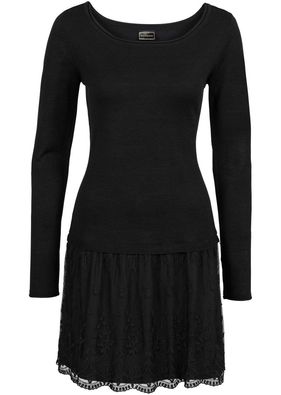 O rochie sexy cu aspect tineresc "2în1"; piepţii din tricot fin şi poala din dantelă delicată, de culoare diferite. Lungimea la măr. 36/38 este de cca. 86 cm. Material superior: 100% poliacril; Fustă de dedesupt: 100% poliester; Dantelă: 60% bumbac, 40% nailon