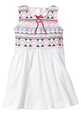 O rochie minunată pentru micile fashioniste, şic ornată pe piept cu un motiv adorabil. Model cu formă lejeră de A, decorat la decolteu cu o fundiţă drăgălaşă. Material superior: 100% bumbac