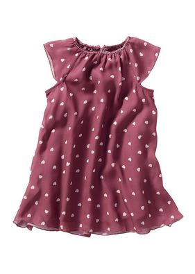 O rochită drăguţă şi comodă, cu mâneci minuscule tip aripioare, formă şic de A. Model realizat în două straturi, frumos ornat cu un imprimeu placativ. Material superior: 100% poliester; Căptuşeală: 100% poliester