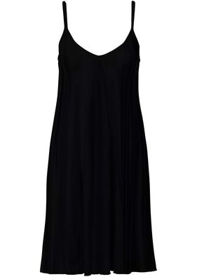 O rochie de vară simplă şi relaxantă, prevăzută cu bretele tip spaghetti şi un croi larg pe trup. Lungimea la măr. 36/38 este de cca. 86 cm. Material superior: 95% vâscoză, 5% elastan
