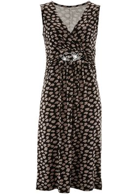 Un croi feminin, ce învăluie frumos silueta! Imprimeu pe toată suprafaţa şi pietricele decorative. Cu o lungime de la cca. 104 cm (măr.36) până la cca. 112 cm (măr.54). Se spală la maşină. Material superior: 95% vâscoză, 5% elastan