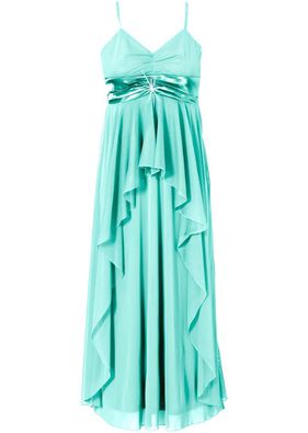 Cu un model elegant, această rochie de seară vă va asigura o prezență ce nu va trece neobservată! Cu bentiță din satin sub piept, broșă lucitoare decorativă, încrețituri elastice la spate și volane în față. Lungimea la măr. 38 este de cca. 132 cm. Material superior: 100% poliester; Căptuşeală: 100% poliester