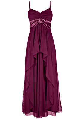 Cu un model elegant, această rochie de seară vă va asigura o prezență ce nu va trece neobservată! Cu bentiță din satin sub piept, broșă lucitoare decorativă, încrețituri elastice la spate și volane în față. Lungimea la măr. 38 este de cca. 132 cm. Material superior: 100% poliester; Căptuşeală: 100% poliester