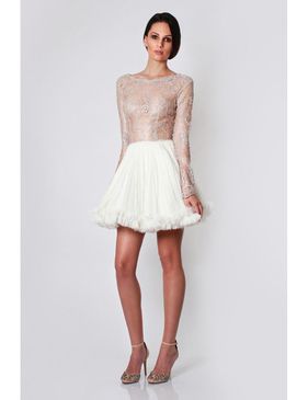 Material: matase naturala si dantela. Culoare: nude si alb.Rochia se realizeaza la comanda conform dimensiunilor dumneavoastra.Produsul nu se returneaza. Designer: Nicole Enea.