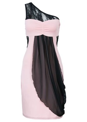 Rochie seducătoare pe un singur umăr! Cu aplicaţie de dantelă la bretele şi în talie, inserţie oblică de şifon cu încreţituri laterale, foarte uşor de purtat datorită materialului fluid. Lungime măr. 40/42 cca. 96 cm. Material superior: 96% vâscoză, 4% elastan; Completare: 100% poliester; Dantelă: 90% poliamidă, 10% elastan
