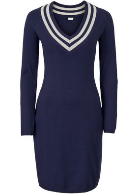 O piesă de tricotaj în stil "lady-chic" cu o formă care urmăreşte cu acurateţe linia trupul şi o lungime elegantă, puţin peste genunchi. Model prevăzut cu decolteu larg în V, garnisit cu dungi de efect, şi cu o lungime de cca. 94 cm la măr. 36/38. Material superior: 50% nailon, 50% vâscoză