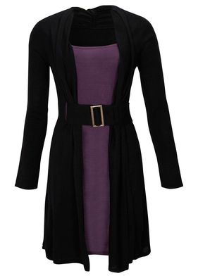 Rochie tricotată elegantă, cu curea și aspect dublu. Lungime la măr. 40/42 cca. 90 cm, se spală la mașină. Material superior: 100% poliacril