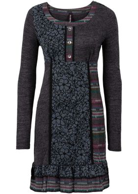 Mix de materiale și nasturi metalice pe o fentă falsă, cu aplicații de dantelă și 2 volane la poale. Lungimea la măr. 36/38 este de cca. 90 cm. Material superior: 100% acril; Inserție material:: 100% bumbac; Completare: 97% poliester, 3% elastan; Dantelă: 100% bumbac