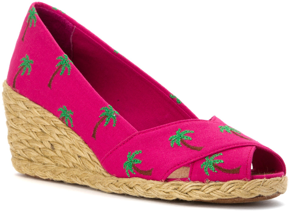 Ralph Lauren Cecilia Geranium/Green/Brown Canvas Embossed Critters
