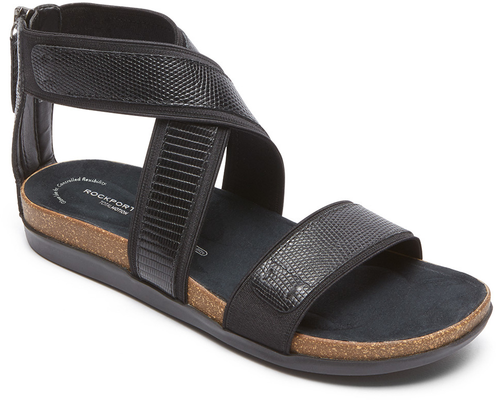 Rockport Romilly Gore Zip Sandal Black Lizard